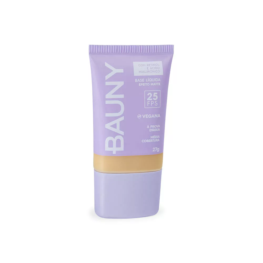 Os pigmentos da base da Bauny são triplamente tratados, o que colabora para que a cor da base não mude com o tempo de secagem, garantindo fidelidade ao tom observado na embalagem.