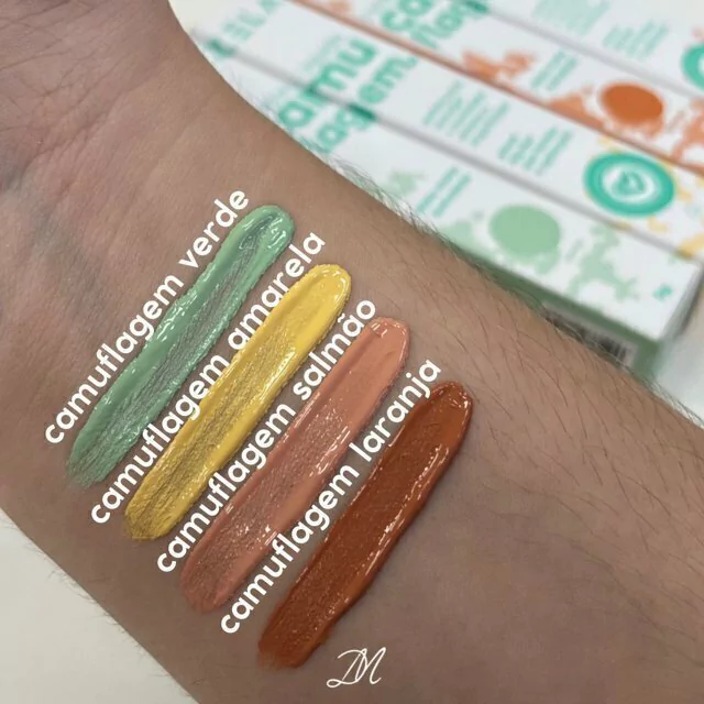 Cor: Salmão - para neutralizar manchas azuladas ou amarronzadas, como olheiras e melasma em peles mais claras.