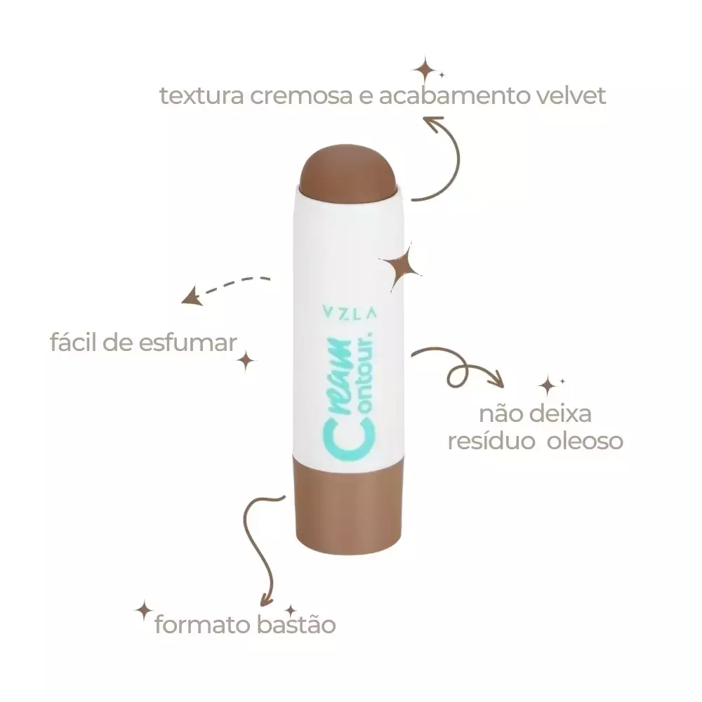Contorno em stick com textura cremosa e fácil de esfumar com acabamento aveludado, dando profundidade ao contorno com efeito natural. Após esfumado, ele seca completamente não deixando resíduos oleosos.