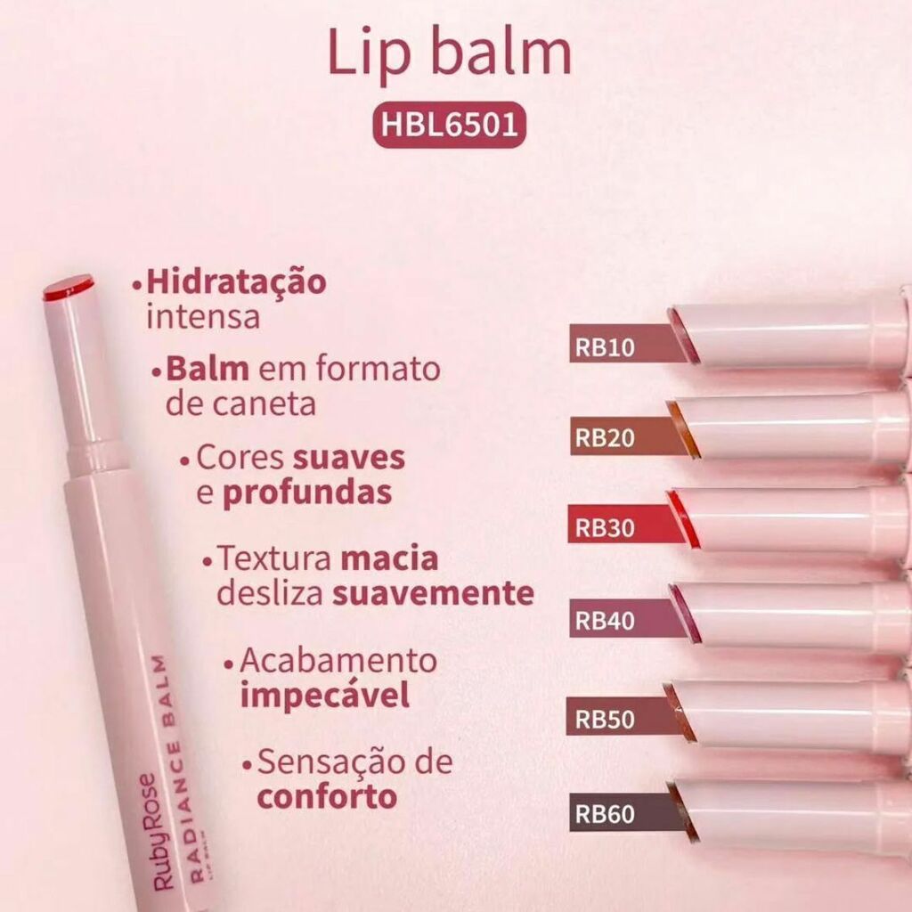 Ideal para ser usado no dia a dia, o Lip Balm Ruby Rose Radiance Balm é perfeito para quem busca lábios hidratados e com aparência saudável, sem sensação pegajosa. Pode ser utilizado sozinho para um visual natural ou como base para outros produtos labiais, garantindo uma aplicação mais suave e confortável.